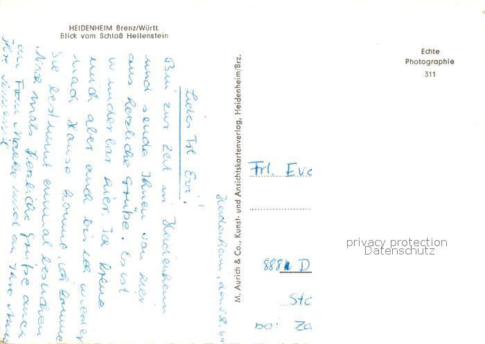 73105715 alte Postkarte Heidenheim Brenz Blick vom Schloss Hellenstein postalisch gelaufen Erhaltung siehe scans [KathaD81] KatCode: 11110008135019