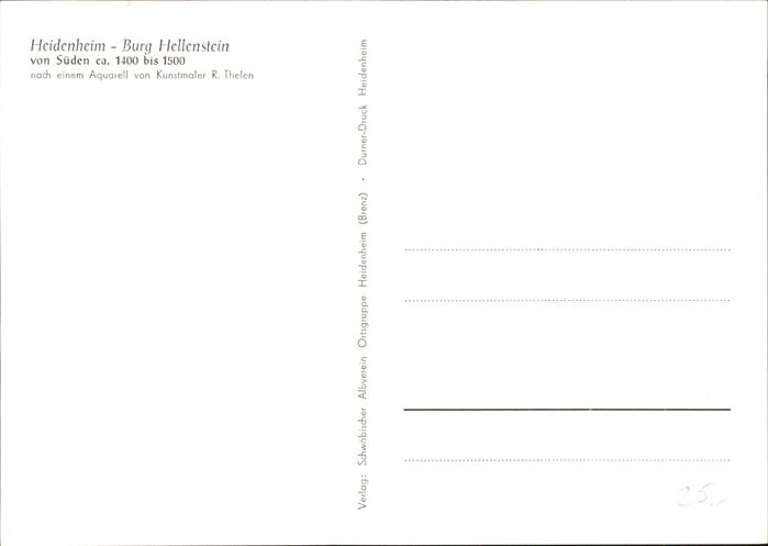 41103360 Heidenheim Brenz Burg Hellenstein Künstler R. Thelen KatCode 11110008135019