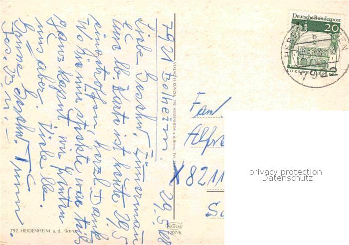 72900717 alte Postkarte Heidenheim Brenz Burg Marktplatz Teilansicht postalisch gelaufen Erhaltung siehe scans [AndreD76] KatCode: 11110008135019