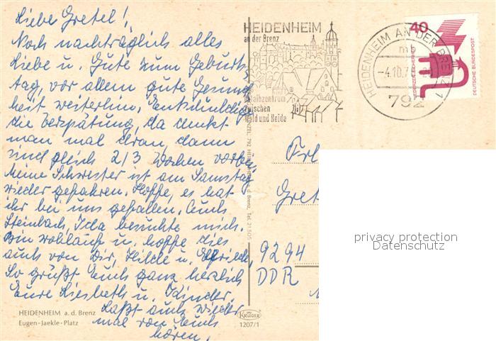 73090291 alte Postkarte Heidenheim Brenz Eugen-Jaekle-Platz postalisch gelaufen Erhaltung siehe scans [NatalD47] KatCode: 11110008135019