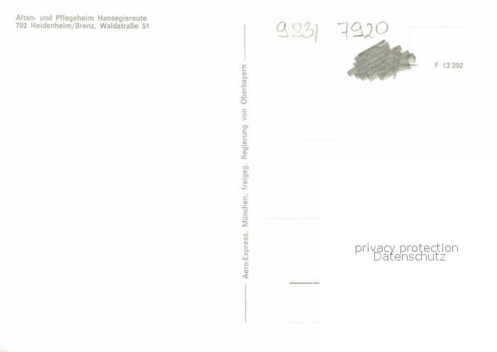 72842716 Heidenheim Brenz Fliegeraufnahme Alten- und Pflegeheim postalisch nicht gelaufen Erhaltung siehe scans [AndreD76] KatCode: 11110008135019