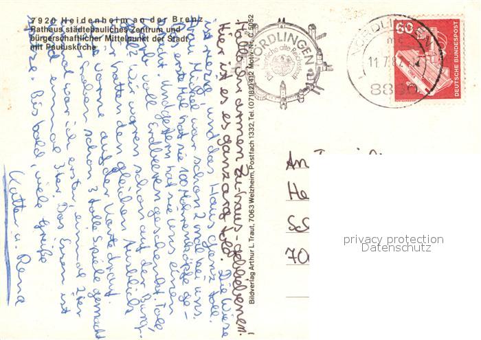 73662170 alte Postkarte Heidenheim Brenz Fliegeraufnahme Rathaus Pauluskirche postalisch gelaufen Erhaltung siehe scans [LiesaD40] KatCode: 11110008135019