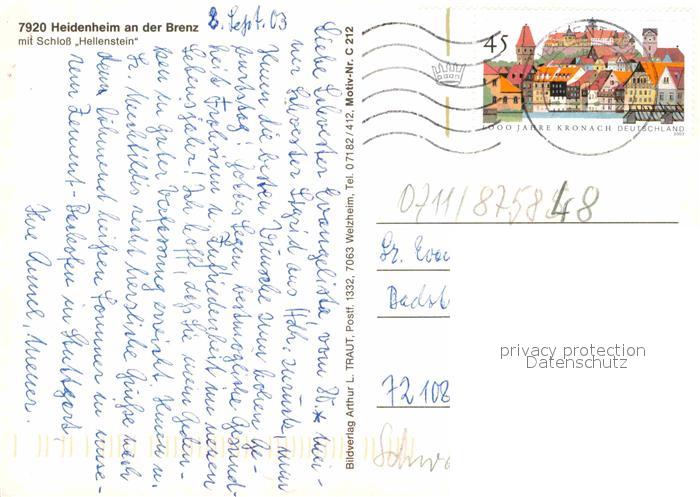 72738708 alte Postkarte Heidenheim Brenz mit Schloss Hellenstein postalisch gelaufen Erhaltung siehe scans [LiesaD40] KatCode: 11110008135019