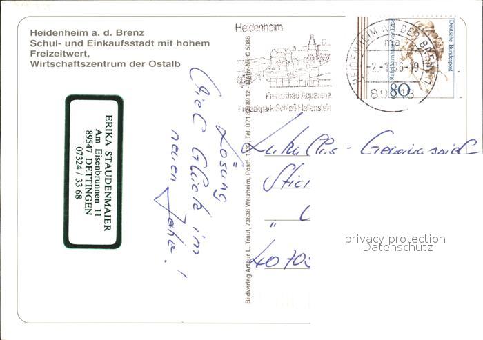 72139534 alte Postkarte Heidenheim Brenz Mittelrain Rathaus Schloss Aquarena Waldbad Naturtheater postalisch gelaufen KatCode: 11110008135019