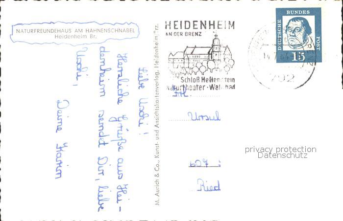 71918667 alte Postkarte Heidenheim Brenz Naturfreundehaus am Hahnenschnabel postalisch gelaufen Erhaltung siehe scans KatCode: 11110008135019