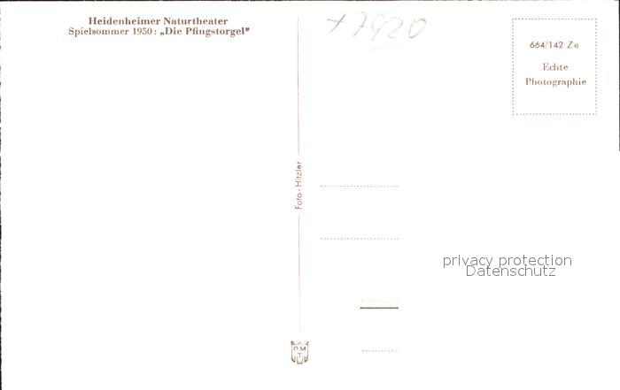 41784260 Heidenheim Brenz Naturtheater Die Pfingstorgel postalisch nicht gelaufen Erhaltung siehe scans KatCode: 11110008135019