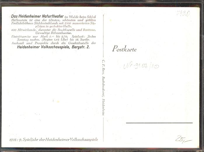 41103415 Heidenheim Brenz Naturtheater Schloss Hellenstein Volksschauspiel KatCode 11110008135019