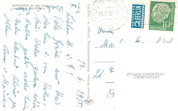 72632832 alte Postkarte Heidenheim Brenz Ortsansicht mit Schloss Hellenstein postalisch gelaufen Erhaltung siehe scans [FriedD77] KatCode: 11110008135019