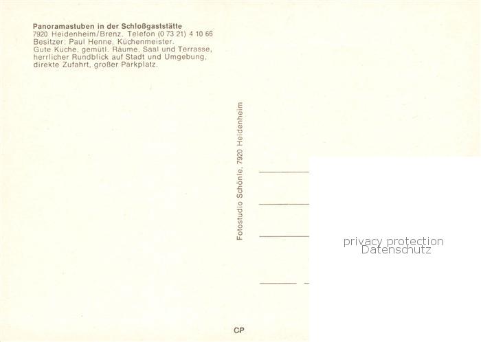 73845519 Heidenheim Brenz Panoramastuben in der Schlossgaststaette postalisch nicht gelaufen Erhaltung siehe scans [WerneD78] KatCode: 11110008135019