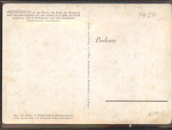41103413 Heidenheim Brenz Pfluggasse Turm Schloss Hellenstein Künstler Klenmeyer KatCode 11110008135019