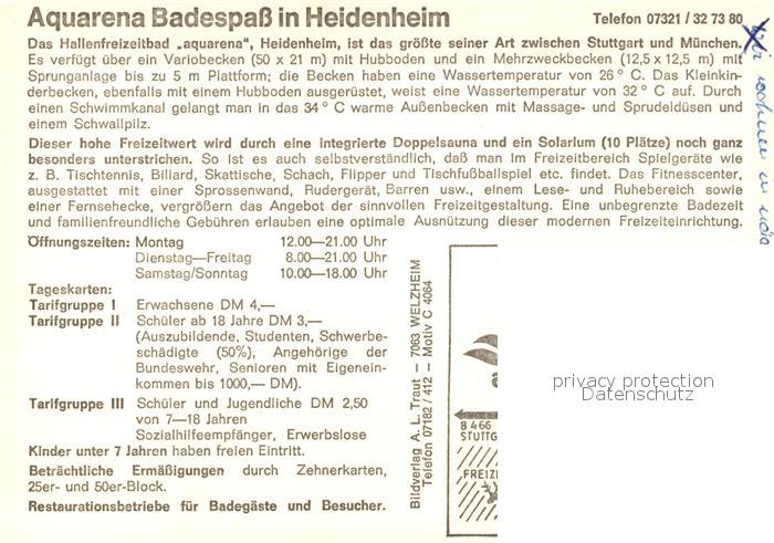 73267507 Heidenheim Brenz Rathaus Schloss Hellenstein Hallenbad postalisch nicht gelaufen Werbekarte (keine Postkarte) Erhaltung siehe scans [WerneD78] KatCode: 11110008135019