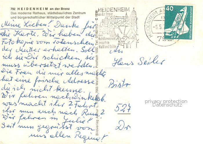 73726067 alte Postkarte Heidenheim Brenz Rathaus staedtebauliches Zentrum Innenstadt postalisch gelaufen Erhaltung siehe scans [LiesaD40] KatCode: 11110008135019