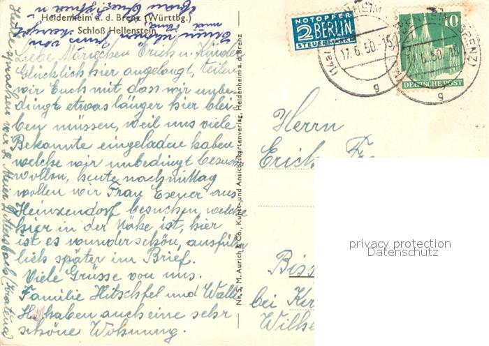 73669037 alte Postkarte Heidenheim Brenz Schloss Hellenstein postalisch gelaufen Erhaltung siehe scans [WerneD78] KatCode: 11110008135019