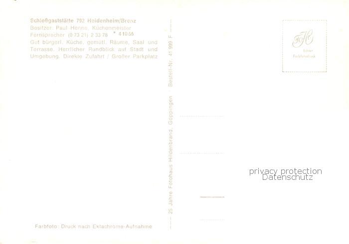 73846088 Heidenheim Brenz Schlossgaststaette Terrasse Gastraum postalisch nicht gelaufen Erhaltung siehe scans [WerneD78] KatCode: 11110008135019