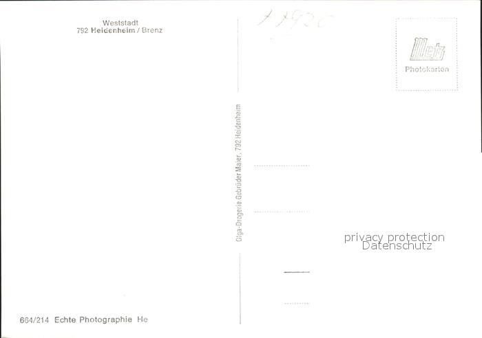 41784568 Heidenheim Brenz Weststadt postalisch nicht gelaufen Erhaltung siehe scans KatCode: 11110008135019