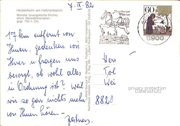 72478469 alte Postkarte Heidenheim Mittelfranken Muenster ev Kirche ehem Benediktinerabtei Fliegeraufnahme postalisch gelaufen Erhaltung siehe scans KatCode: 11110009577140