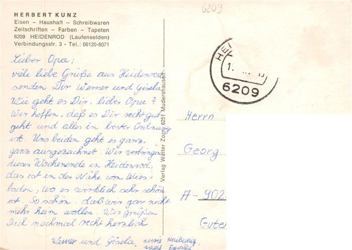 73936571 alte Postkarte Heidenrod Fliegeraufnahme postalisch gelaufen Erhaltung siehe scans [FriedD77] KatCode: 11110006439005