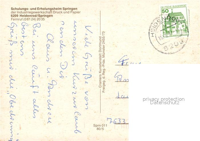 73070416 alte Postkarte Heidenrod Schulungs und Erholungsheim Springen Fliegeraufnahme postalisch gelaufen Erhaltung siehe scans [WerneD78] KatCode: 11110006439005
