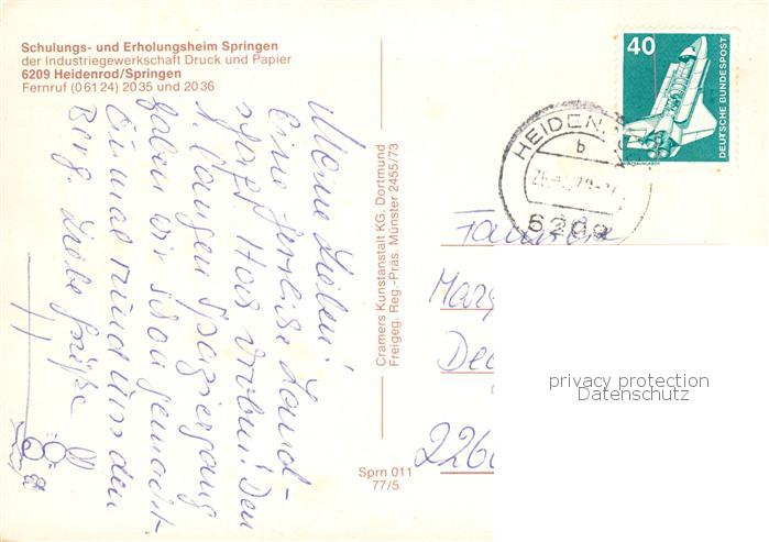 73814306 alte Postkarte Heidenrod Schulungs und Erholungsheim Springen Fliegeraufnahme postalisch gelaufen Erhaltung siehe scans [FriedD77] KatCode: 11110006439005