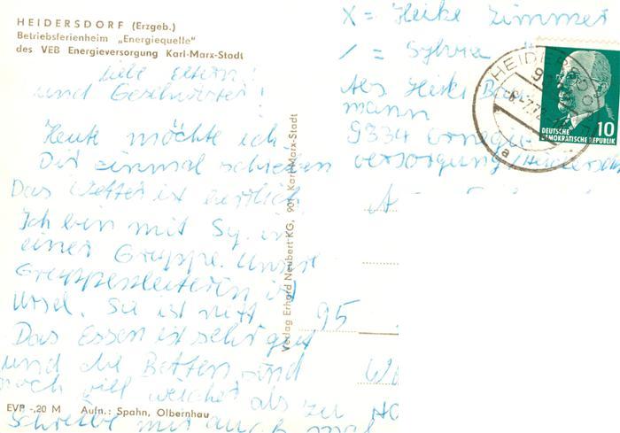 73907594 alte Postkarte Heidersdorf Betriebsferienheim Energiequelle des VEB Energieversorgung Karl Marx Stadt postalisch gelaufen Erhaltung siehe scans [FriedD77] KatCode: 11110014181170