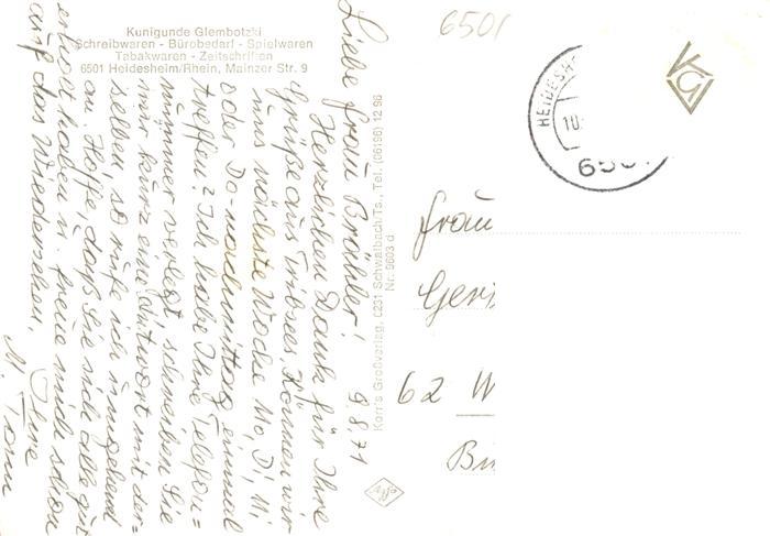 73896990 alte Postkarte Heidesheim Campingplatz Burg Windeck Jugendherberge Blick vom Rabenkopf Kreuz Badesee Kriegerdenkmal Altersheim postalisch gelaufen Erhaltung siehe scans [FriedD77] KatCode: 11110007339027