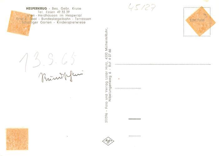 73869159 Heidhausen Essen Hesperkrug Gaststaette Gastraeume Terrasse postalisch nicht gelaufen Erhaltung siehe scans [FriedD77] KatCode: 11110005113000