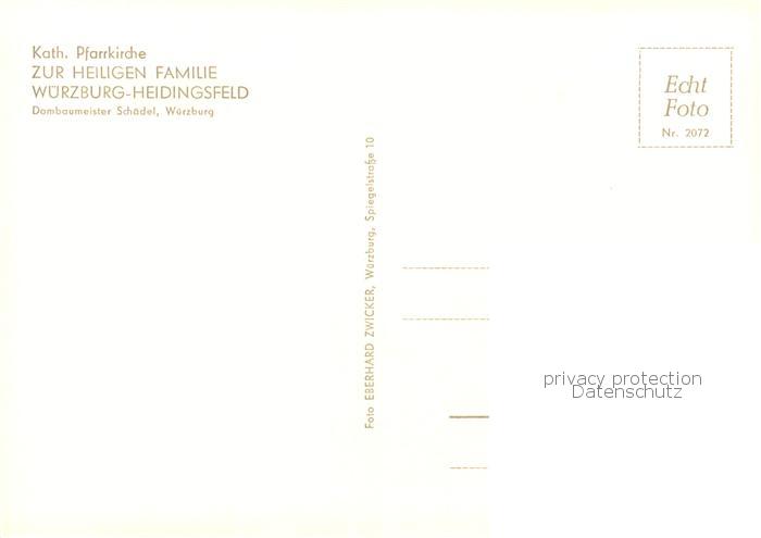 73868253 Heidingsfeld Wuerzburg Kath Pfarrkirche zur Hl Familie postalisch nicht gelaufen Erhaltung siehe scans [WerneD78] KatCode: 11110009663000