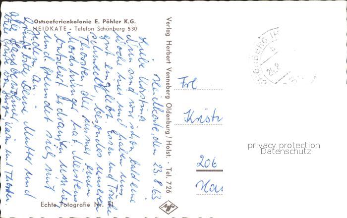 72177369 alte Postkarte Heidkate Schoenberg Strand Waldweg Zeltplatz postalisch gelaufen Erhaltung siehe scans KatCode: 11110001057073