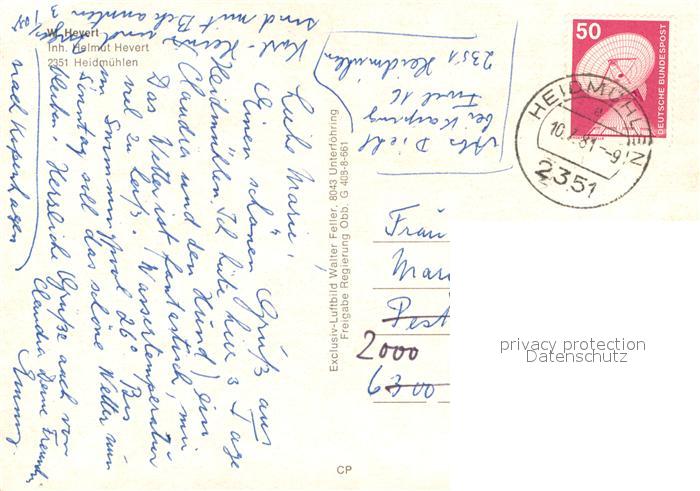 73745057 alte Postkarte Heidmuehlen Holstein Fliegeraufnahme Kirche Muehle postalisch gelaufen Erhaltung siehe scans [WerneD78] KatCode: 11110001060038