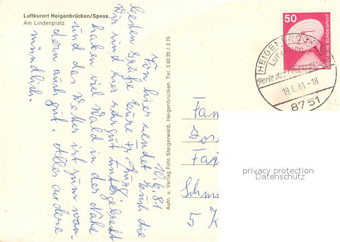 73711619 alte Postkarte Heigenbruecken Am Lindenplatz m. Gasthof-Pension zur frischen Quelle postalisch gelaufen Erhaltung siehe scans [LiesaD40] KatCode: 11110009671126