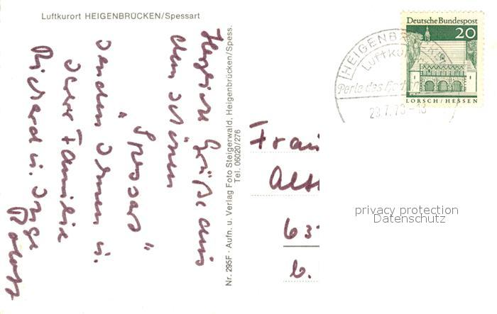 73146653 alte Postkarte Heigenbruecken Ansicht vom Waldrandaus Luftkurort im Spessart postalisch gelaufen Erhaltung siehe scans [FriedD77] KatCode: 11110009671126