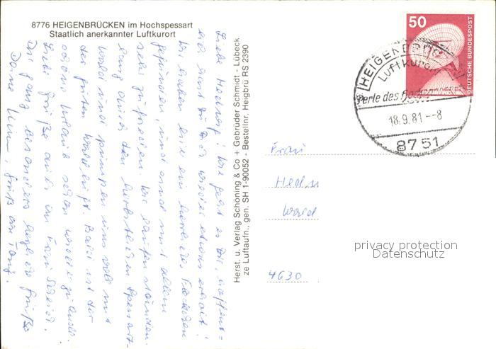 72494888 alte Postkarte Heigenbruecken Fliegeraufnahme im Hochspessart postalisch gelaufen Erhaltung siehe scans KatCode: 11110009671126