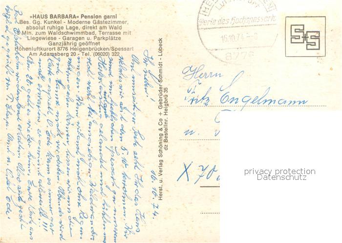 73646426 alte Postkarte Heigenbruecken Haus Barbara Terrasse Fliegeraufnahme postalisch gelaufen Erhaltung siehe scans [WerneD78] KatCode: 11110009671126