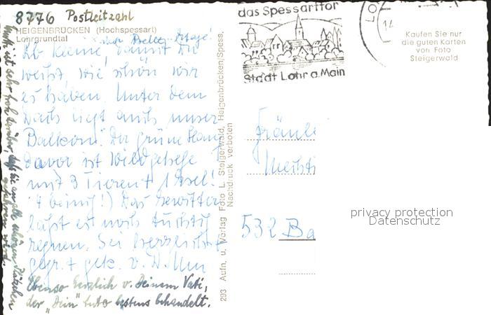 72197886 alte Postkarte Heigenbruecken im Lohrgrundtal postalisch gelaufen Erhaltung siehe scans KatCode: 11110009671126