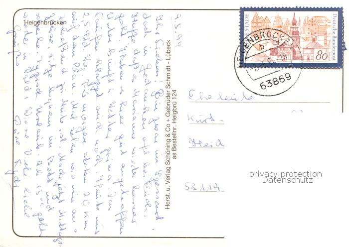 73839506 alte Postkarte Heigenbruecken Panorama Koehlermahlzeit Pollasch Denkmal Kirchplatz Mariengrotte postalisch gelaufen Erhaltung siehe scans [FriedD77] KatCode: 11110009671126