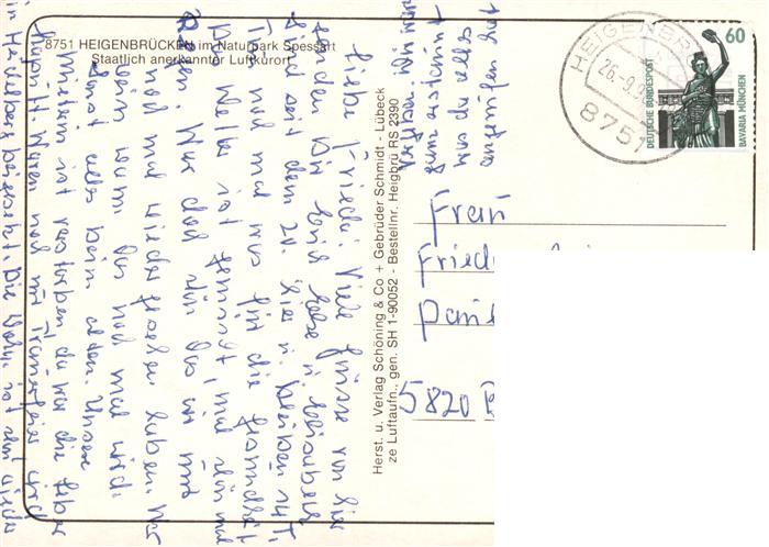 73946694 alte Postkarte Heigenbruecken Panorama Luftkurort im Naturpark Spessart postalisch gelaufen Fliegeraufnahme Erhaltung siehe scans [FriedD77] KatCode: 11110009671126