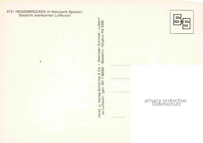 74024747 Heigenbruecken Panorama Luftkurort Naturpark Spessart postalisch nicht gelaufen Fliegeraufnahme Erhaltung siehe scans [FriedD77] KatCode: 11110009671126