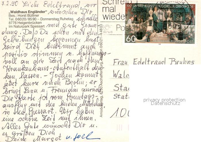 73663979 alte Postkarte Heigenbruecken Waldhaus Englaender im Naturpark Spessart postalisch gelaufen Erhaltung siehe scans [FriedD77] KatCode: 11110009671126