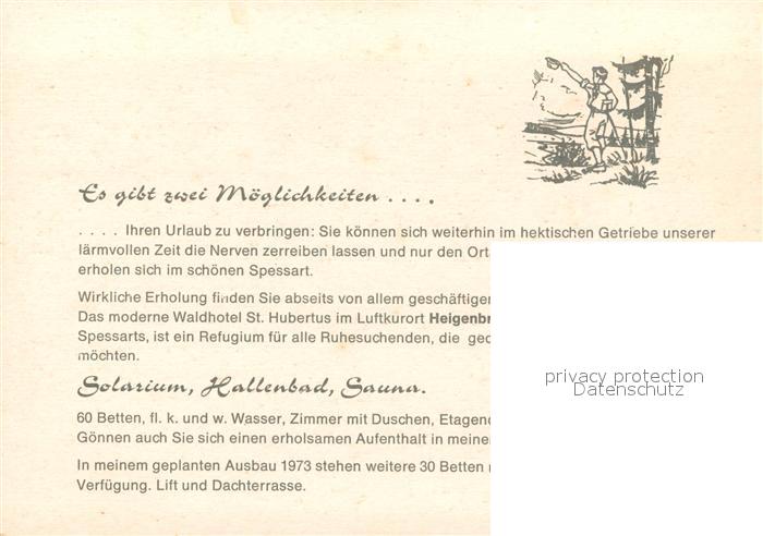73720461 Heigenbruecken Waldhotel St. Hubertus Hallenbad Fliegeraufnahme postalisch nicht gelaufen Werbekarte (keine Postkarte) Erhaltung siehe scans [FriedD77] KatCode: 11110009671126
