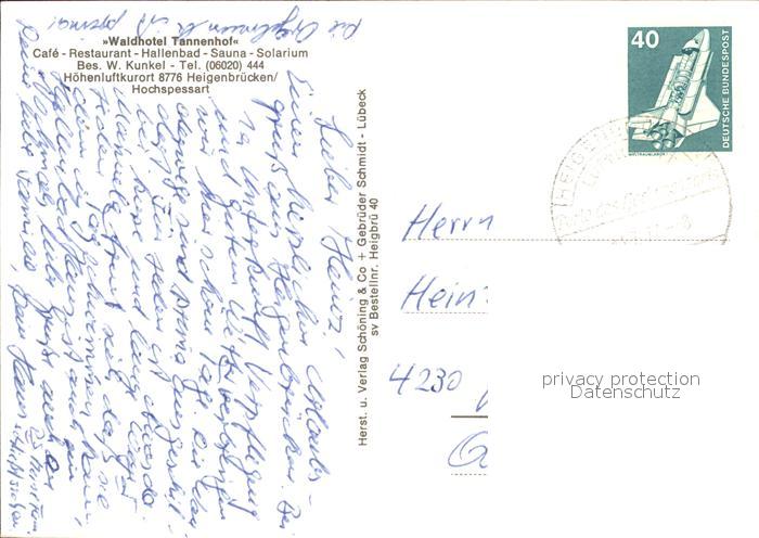 71927995 alte Postkarte Heigenbruecken Waldhotel Tannenhof postalisch gelaufen Erhaltung siehe scans KatCode: 11110009671126