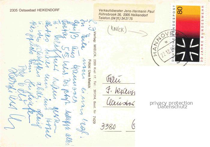 74029431 alte Postkarte Heikendorf Ostseebad Teilansichten Hafen Sportstadion Denkmal postalisch gelaufen Erhaltung siehe scans [FriedD77] KatCode: 11110001057025