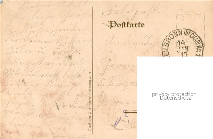73770121 alte Postkarte Heilbronn Neckar Alte Schmiede Zehntgasse Schueler Postkarte der Oberrealschule Heilbronn Feldpost postalisch gelaufen Erhaltung siehe scans [WerneD78] KatCode: 11110008121000