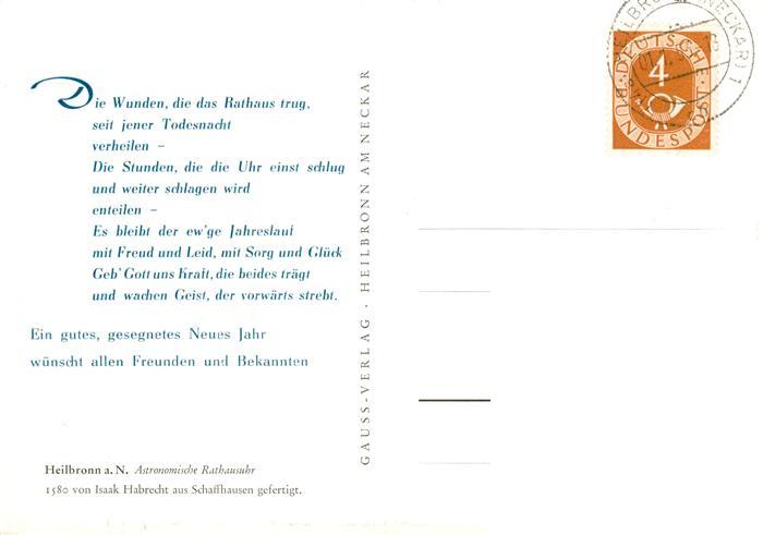 73878350 alte Postkarte Heilbronn Neckar Astronomische Rathausuhr postalisch gelaufen Erhaltung siehe scans [WerneD78] KatCode: 11110008121000