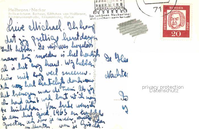 72754265 alte Postkarte Heilbronn Neckar Bollwerksturm Rathaus Kaethchen von Heilbronn Kirchbrunnenstrasse Kilianskirche Hafen postalisch gelaufen Erhaltung siehe scans [FriedD77] KatCode: 11110008121000