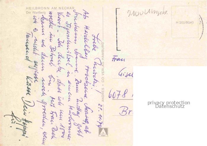74051004 alte Postkarte HEILBRONN Neckar Der Wartberg Weinberg postalisch gelaufen Erhaltung siehe scans [FriedD77] KatCode: 11110008121000