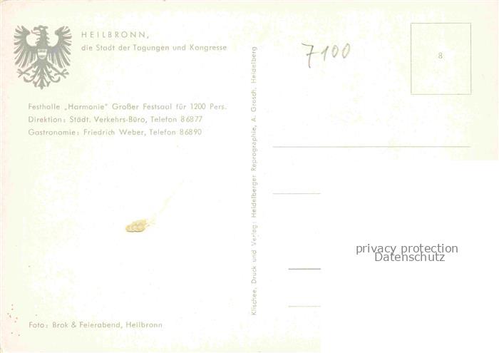 74042645 HEILBRONN Neckar Festhalle Harmonie Grosser Saal postalisch nicht gelaufen Erhaltung siehe scans [FriedD77] KatCode: 11110008121000