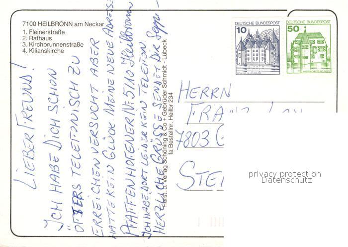 73024418 Heilbronn Neckar Fleinerstrasse Rathaus Kirchbrunnenstrasse Kilianskirche postalisch nicht gelaufen Erhaltung siehe scans [PaolaD17] KatCode: 11110008121000