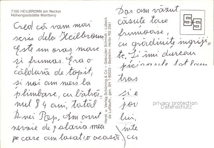 72450938 Heilbronn Neckar Fliegeraufnahme Restaurant Wartberg postalisch nicht gelaufen Erhaltung siehe scans KatCode: 11110008121000