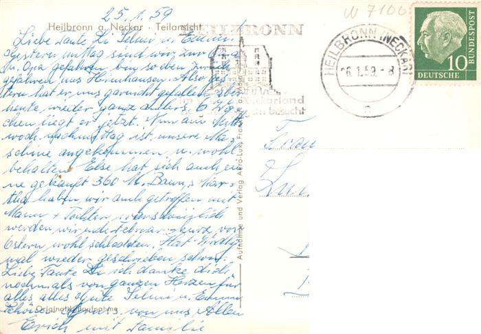 73887064 alte Postkarte Heilbronn Neckar Fliegeraufnahme postalisch gelaufen Erhaltung siehe scans [FriedD77] KatCode: 11110008121000
