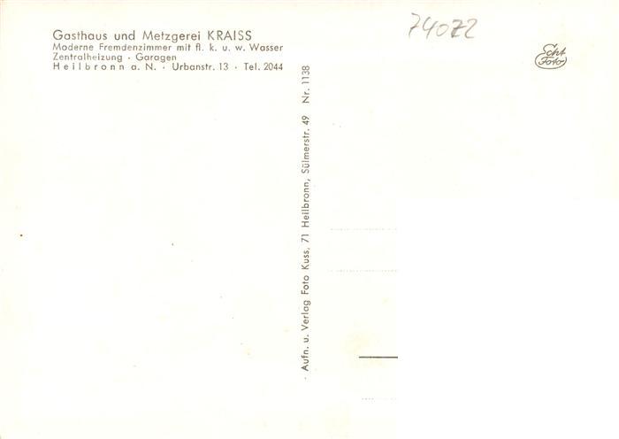73869162 Heilbronn Neckar Gasthaus Metzgerei Kraiss postalisch nicht gelaufen Erhaltung siehe scans [FriedD77] KatCode: 11110008121000